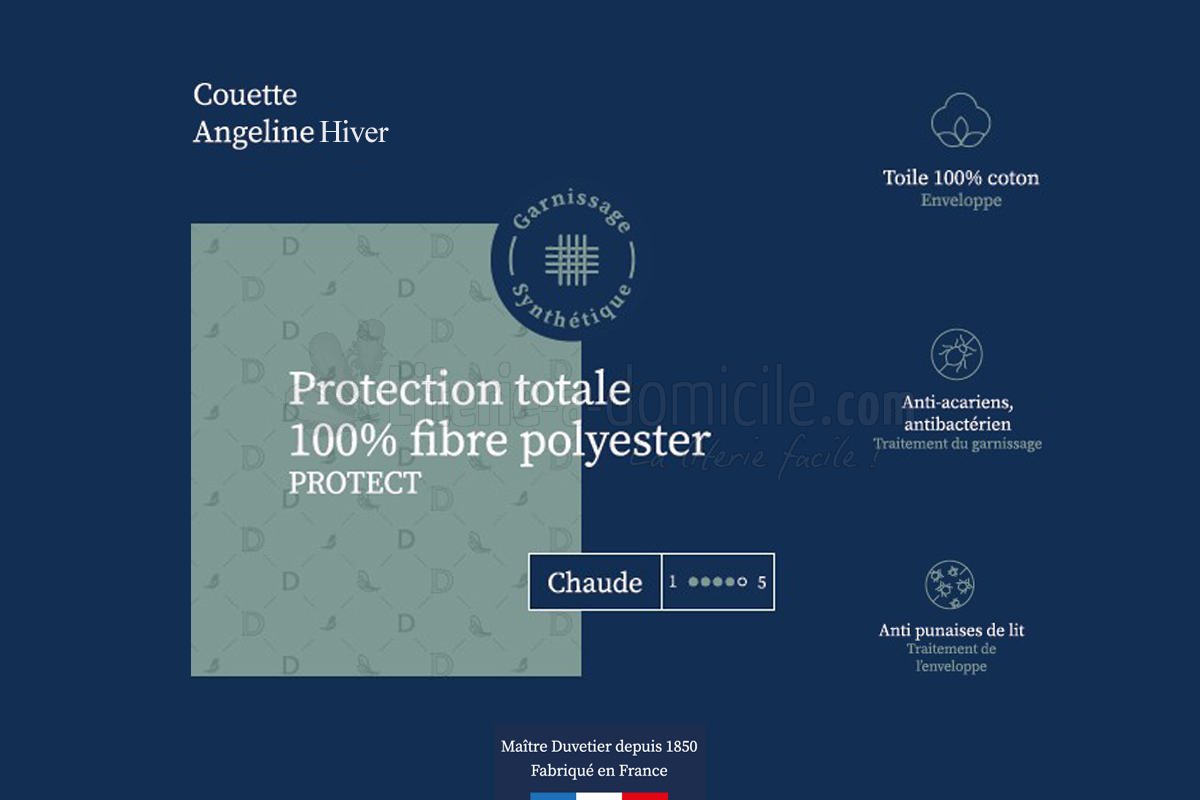 La couette synthétique ANGELINE v.3 hiver a été conçue pour allier chaleur, hygiène et durabilité.