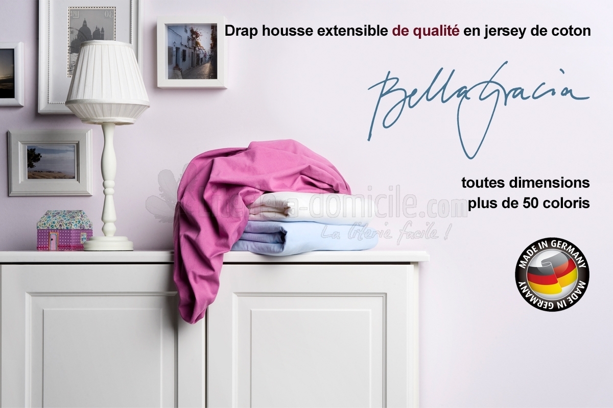 Le drap housse BELLA GRACIA est confectionné dans un tissu jersey de coton et élasthanne. Son fil très fin lui confère une grande légèreté tandis que sa densité lui offre une texture exceptionnelle et une protection contre les bouloches.