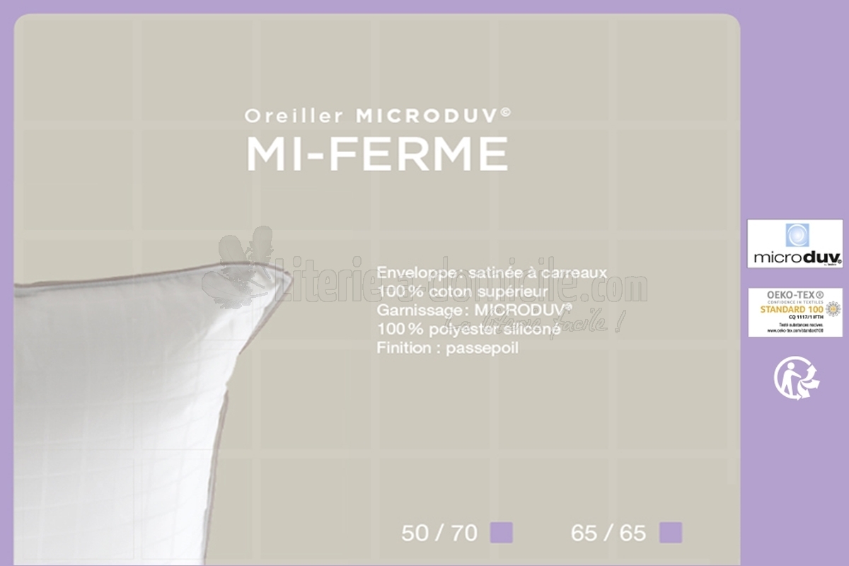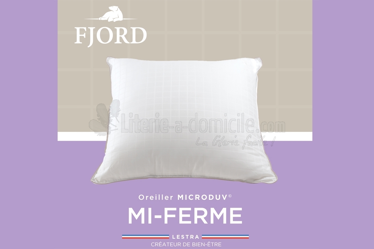 L'oreiller MICRODUV® mi-ferme de la gamme FJORD de LESTRA présente une enveloppe 100% coton supérieur satinée à carreaux. Son garnissage MICRODUV® 100 % polyester offre un confort comparable au duvet. Une élégante finition passepoil souligne le tour de l'oreiller.