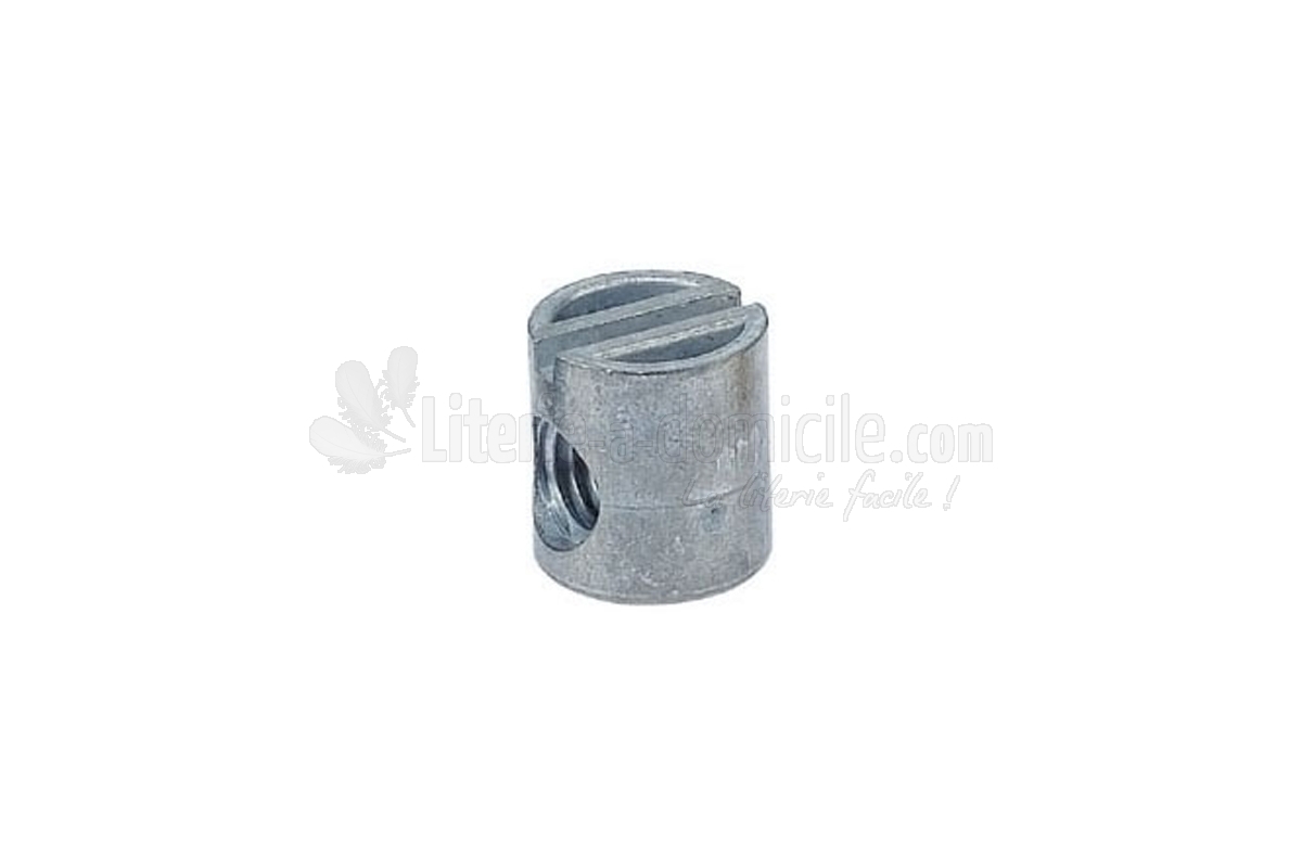Ce plot est utilisé dans l'assemblage de certains lits et meubles. Il s'utilise avec une vis de lit ou un goujon 4 trous à filetage Ø 8 pas de 150.