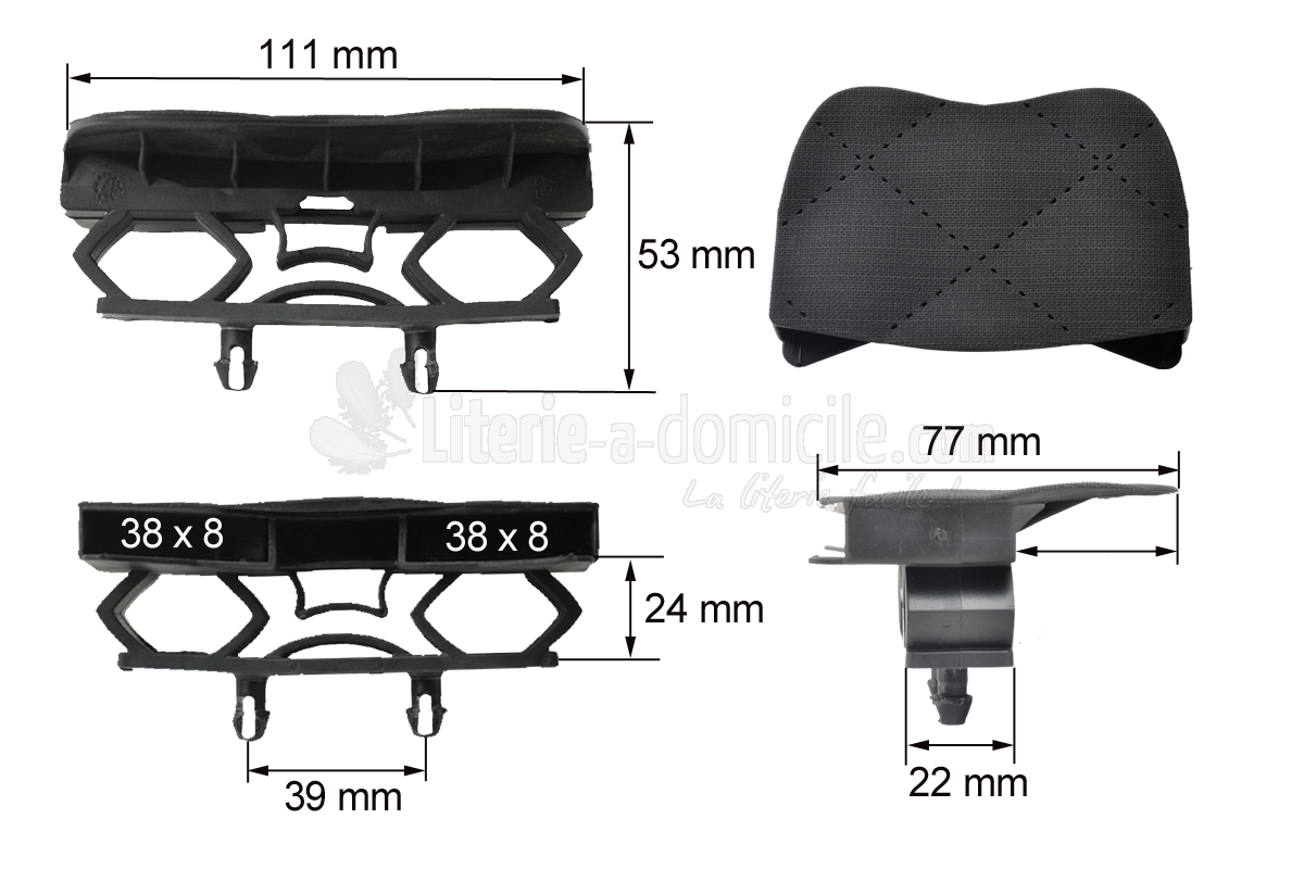 L'embout SASHIKO est généralement monté sur des sommiers à cadre métallique MERAL. Il assure une suspension dynamique de vos lattes 38 x 8 mm.