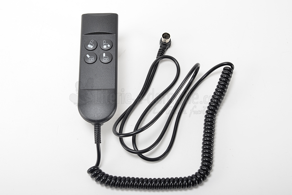 Télécommande filaire 4 boutons PROLINE-4 compatible avec les fauteuils relaxation électriques nécessitant 4 boutons et présentant une connexion par fiche DIN 5 broches.